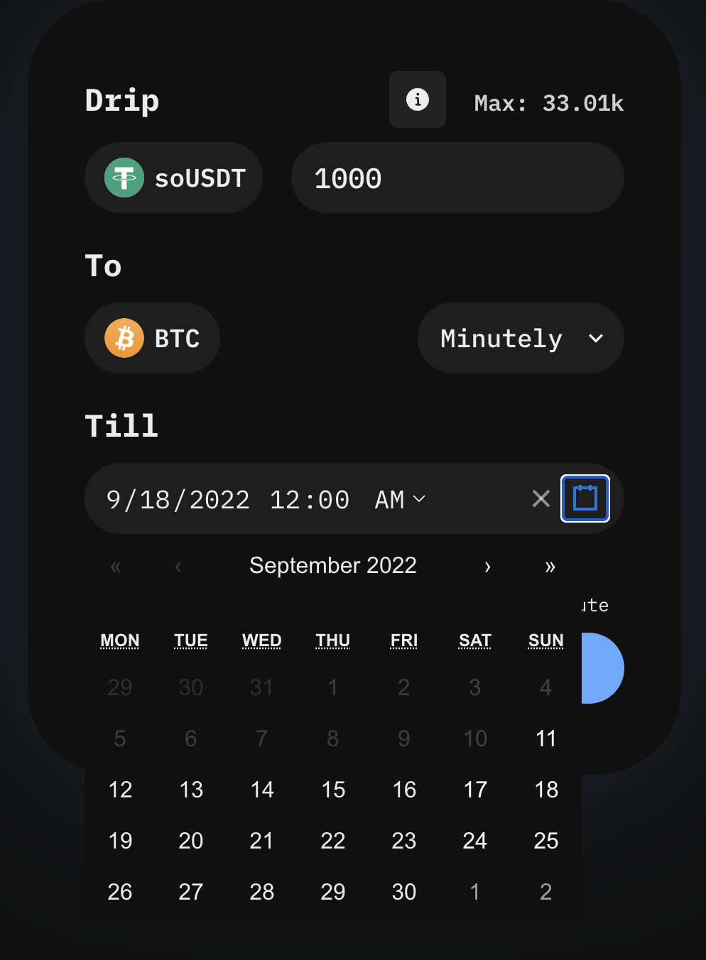 Choose your desired frequency. A frequency describes how often you would like a swap to happen. \