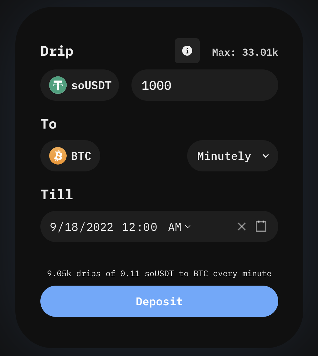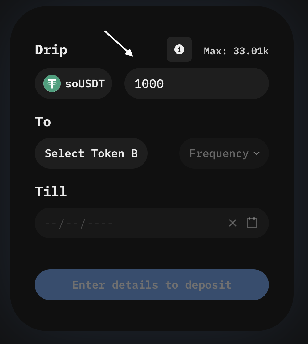 <figure><img src="https://830642869-files.gitbook.io/~/files/v0/b/gitbook-x-prod.appspot.com/o/spaces%2F7Fe84MvzJ8tiOlQNqCK8%2Fuploads%2FOAG2xVIlisON8Mze2y3Z%2FScreen%20Shot%202022-09-11%20at%205.00.30%20PM.png?alt=media&#x26;token=23f4002c-4e69-490a-82ff-d398a109770e" alt=""><figcaption><p>Type in a deposit amount, or click "max" to deposit your entire balance</p></figcaption></figure>