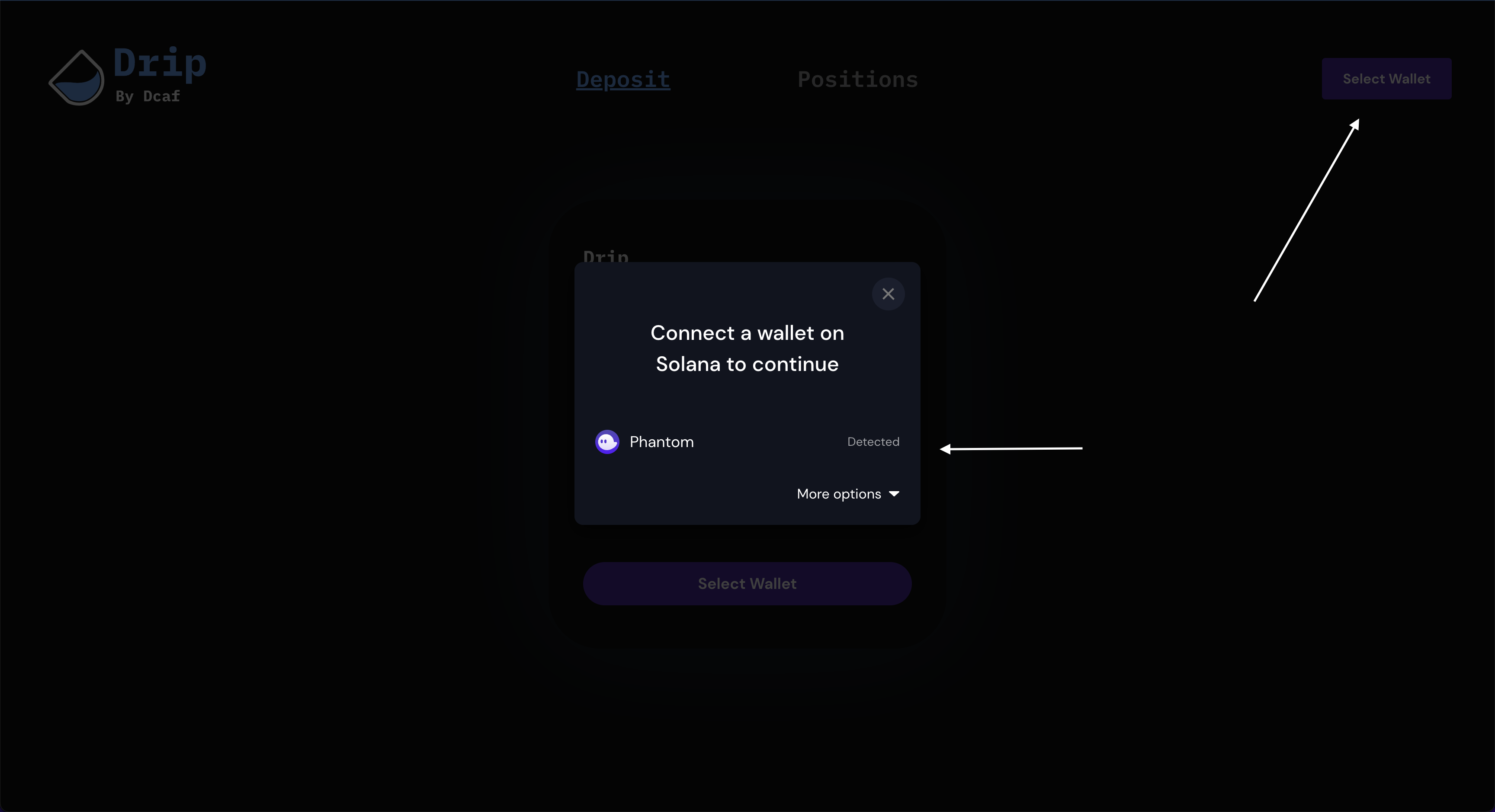 The first thing you will want to do within the application is connect you wallet.